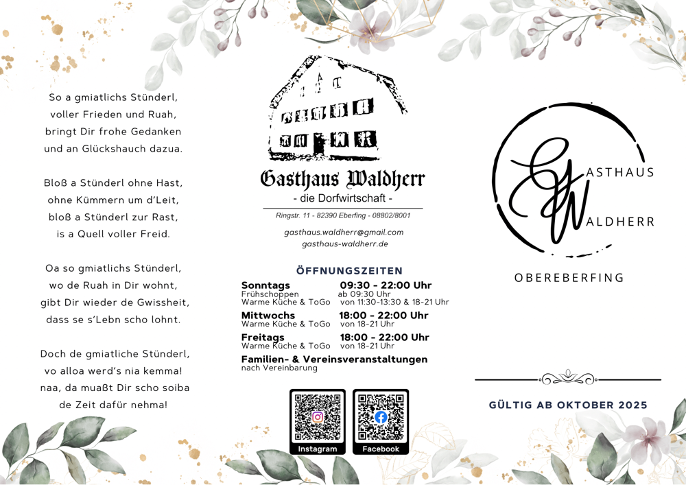 Bestellungen oder Reservierungen telefonisch oder via WhatsApp unter 08802-8001